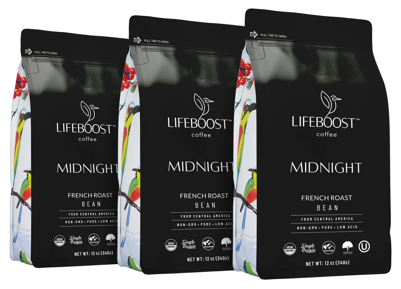 Lovers of dark roasted coffees delight at our espresso roast, and we’ve taken that delightful darkness one step further in bringing you our organic midnight roast coffee.